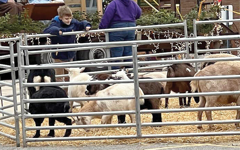 Many young children attending Saturday’s ‘Night in Bethlehem’ were drawn to the abundance of live animals at the event. A young boy, above, attempts to draw some of the animals closer to him during the event.