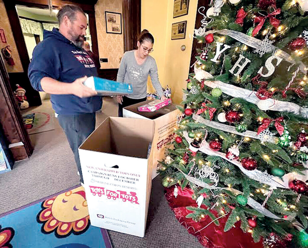 The Inter-Mountain file photo Toys for Tots Regional Coordinator Chris Lee and Youth Health Service Director of Business Operations Amanda Arbogast go through boxes during a past collection period for Toys for Tots. Toy collections boxes are currently set up at locations across the county and will be distributed on Dec. 22.