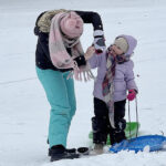 - Lasa Rinehart makes sure her daughter, Lakelyn, has all of her warm clothes on correctly as the two prepare to sled down a hill at Davis & Elkins College.