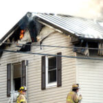 The Inter-Mountain photos by Joey Kittle Multiple area fire departments battled a house fire Friday morning on Highland Avenue in Belington. Responding units included the Belington, Junior, Philippi and Coalton volunteer fire departments, the Elkins Fire Department, EMS units from Barbour County and the West Virginia State Police.