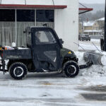 - Jared Reel uses a side-by-side to remove snow from a parking lot on the corner of Third Street and Henry Avenue.