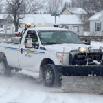 - The Inter-Mountain photos by Edgar Kelley Close to two inches of snow fell overnight and continued through Thursday morning in Elkins. A West Virginia Division of Highways truck clears snow from North Randolph Avenue Thursday.
