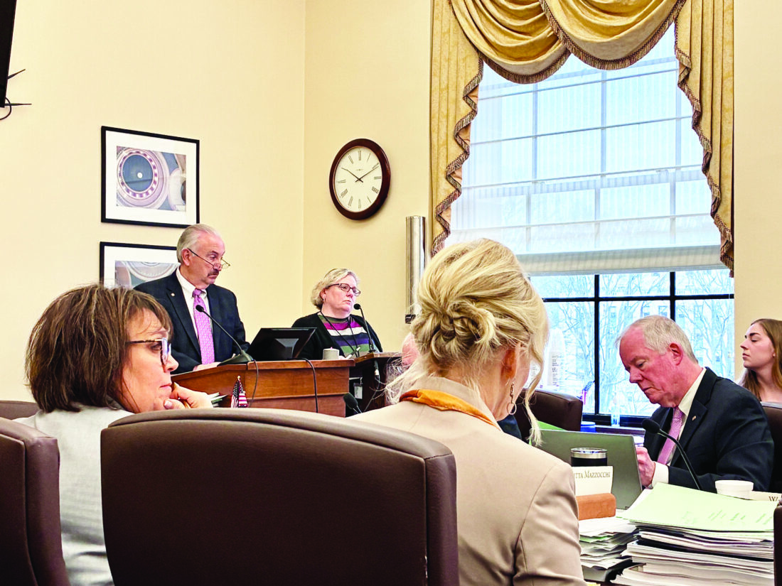 Photo by Steven Allen Adams The House Finance Committee, chaired by Del. Vernon Criss, listens to a staff attorney explain an originating bill making substantive changes to the Hope Scholarship educational voucher program Wednesday morning.