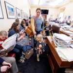Law enforcement on the scene was also seen assessing some of the damage, at left, that was caused from the wreck.