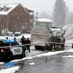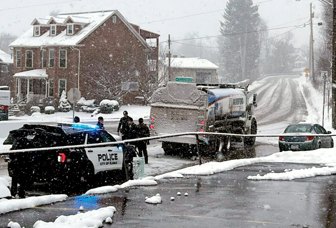 The Inter-Mountain photos by Edgar Kelley Officers with the Elkins City Police and the West Virginia State Police responded to a two-vehicle accident on Harrison Avenue next to Davis Medical Center on Monday afternoon. Police officers gather behind the truck that was involved in the accident.