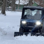- Elkins Parks and Recreation Assistant Director Jake Gooden works to clean up some of the snow from the walkways and sidewalks at Elkins City Park during the current cold snap.