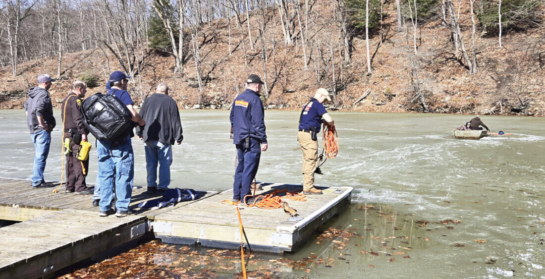 “Williams, using a log, began scooting the boat over the ice to the two men. He was halfway to them when first responders showed up,” she said, adding that they all stood on the dock, watching as Williams pulled each men into the boat. A first responder then threw Williams a rope, and they pulled the boat back toward safety.