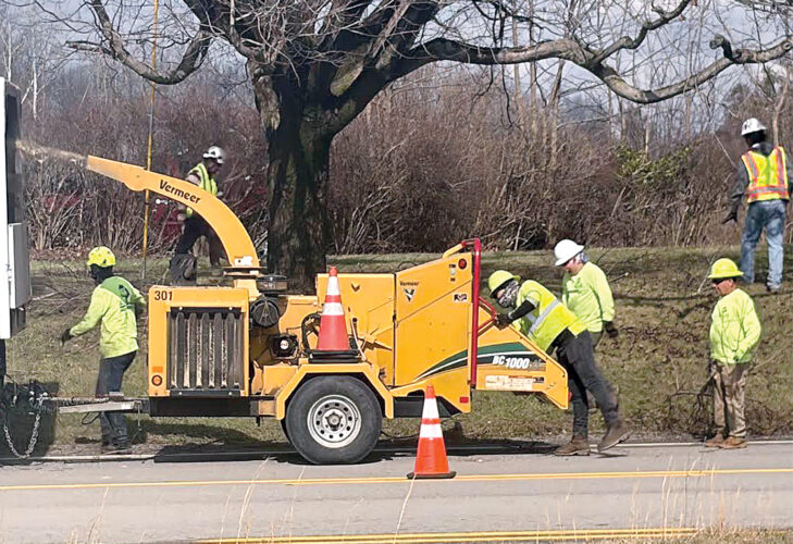 Many of the limbs and branches that were trimmed from the trees were put in a wood chipper by other employees with the company, which is based out of Weston.