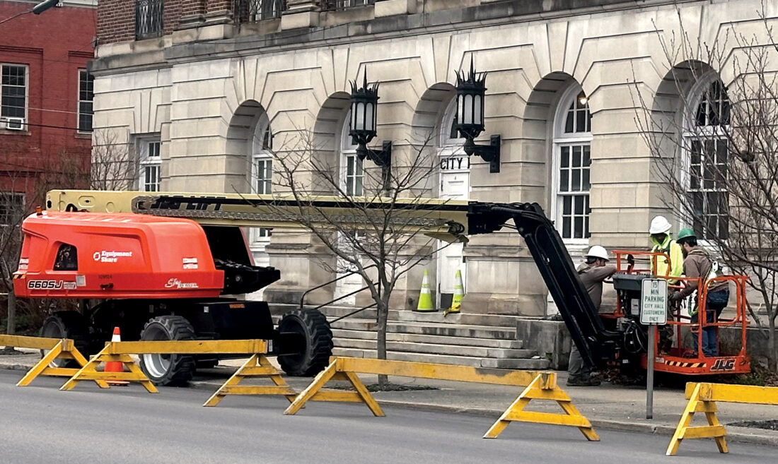 The Inter-Mountain photos by Taylor McKinnie Work continues on the outside of Elkins City Hall as crews focus on masonry repair and restoration work on the building. Elkins City Hall has been closed for restoration and recovery work since Aug. 31, 2024, after a sewage overflow incident flooded the building’s basement and first floor, including the Elkins City Police Department. The building could reopen as soon as July, city officials have said.