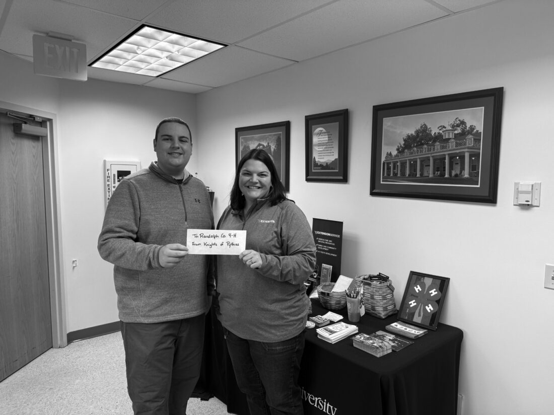 Submitted photo WVU Extension Agent Hannah Fincham, right, accepts a donation for Randolph County 4-H from Logan Campbell on behalf of the Knights of Pythias Lodge #76. Randolph County 4‑H is now accepting sponsorships to provide camp scholarships for youth with financial need and to help keep overall costs low by covering essential expenses such as supplies. These contributions ensure more young people have the opportunity to participate in 4‑H camps this summer. For more information on how to donate, contact Stephanie Warner at WVU Extension at 304-636-2455 or by emailing swarner6@mail.wvu.edu.