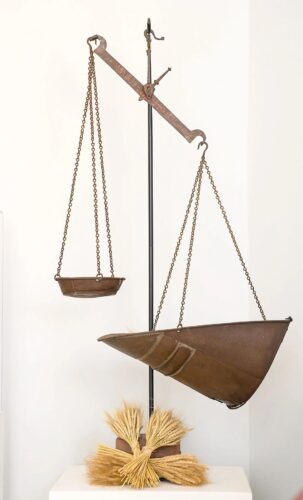 An exhibit at the Heritage Frederick historical society on Frederick’s contributions to the Revolutionary War shows a grain scale from a mill that belonged to Philip Feaga, a German farmer. Feaga, who purchased the mill property in 1785, was a Hessian ally for the British during the American Revolution, according to the Maryland Historical Trust.