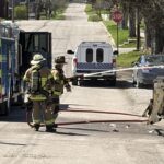 The Inter-Mountain photo by Edgar Kelley Members of the Elkins Fire Department put out a small fire that ignited in the back of a City of Elkins garbage truck on Wednesday afternoon. No one was injured as EFD quickly had the situation in hand.