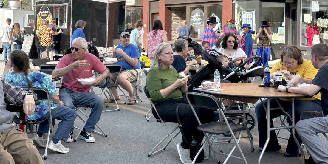 The Inter-Mountain photos by Taylor McKinnie Event-goers enjoy meals from local food trucks and food stands while at the Tygart Together block party.