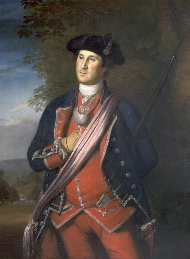 In May 1755, Washington joined British Gen. Edward Braddock on an expedition to Pittsburgh with the intent of capturing the French stronghold of Fort Duquesne. Braddock’s troops were ambushed on July 9, 1755, and Braddock was mortally wounded, leaving Washington in command as his soldiers fled south.