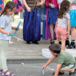 The Inter-Mountain photos by Taylor McKinnie Kids play with chalk and bubble wands on Davis Avenue during the Tygart Together block party. The party drew a large crowd to help celebrate the Tygart Hotel's two year anniversary. The even featured several activities for youth, food vendors and several performances.