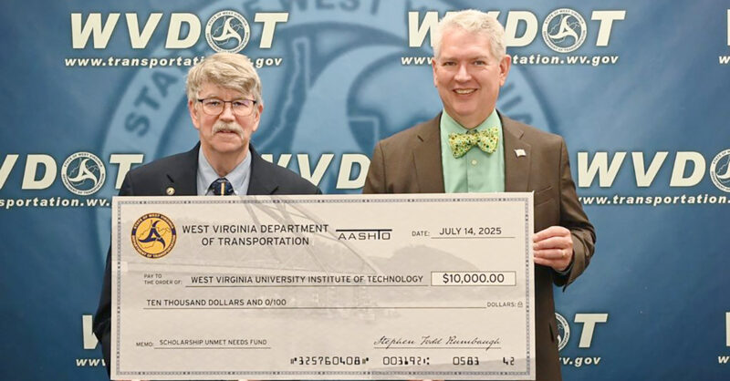 CHARLESTON — Recently, state Transportation Secretary Stephen Todd Rumbaugh, P.E., presented the West Virginia University Institute of Technology with a $10,000 check for the university’s Beckley campus.