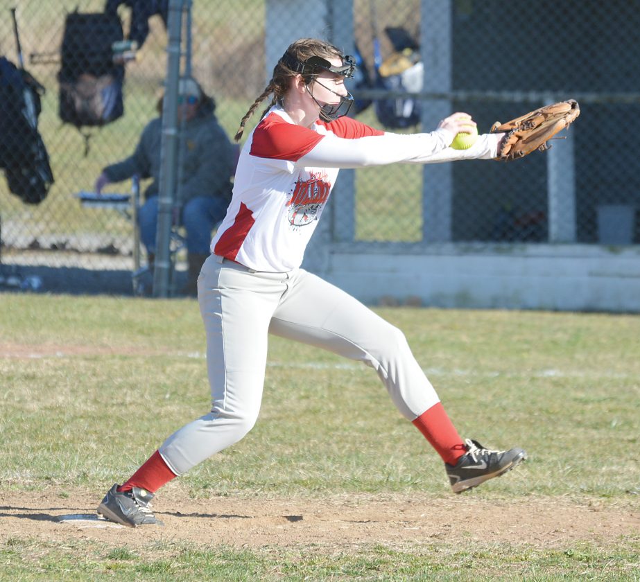The Inter-Mountain photo by Edgar Kelley Tygarts Valley pitcher Courtney Haddix goes into her windup during Tuesday’s game against Pendleton County.