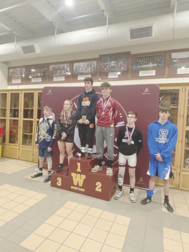 Submitted photo Elkins High School sophomore Gavin Boland stands on the podium after placing first in the Bob Zide Rumble held Saturday at Williamstown.