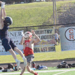 The Inter-Mountain photos by Joey Kittle A Philip Barbour defender makes a leaping interception against Tygarts Valley during 7 vs. 7 action Friday evening at George Byrer Field at BC Bank Park in Philippi.