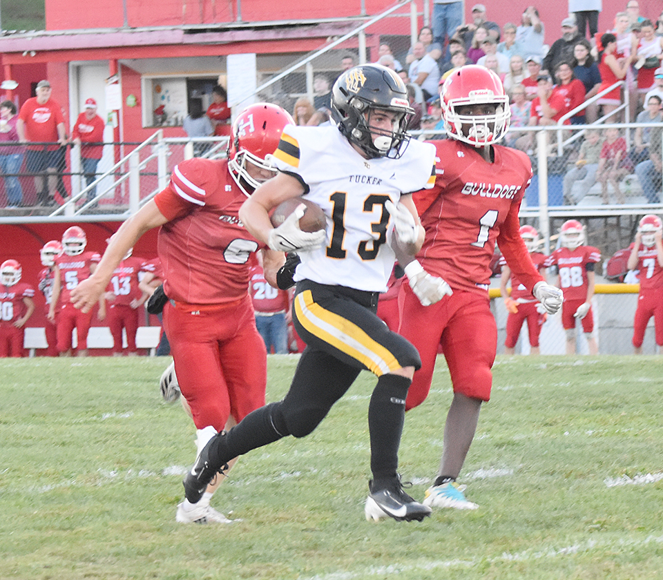 Jaxon Drennen completed 7 of 17 passes for the Bulldogs (0-2) for 65 yards. Adam Woods had 32 yards rushing on six totes.
