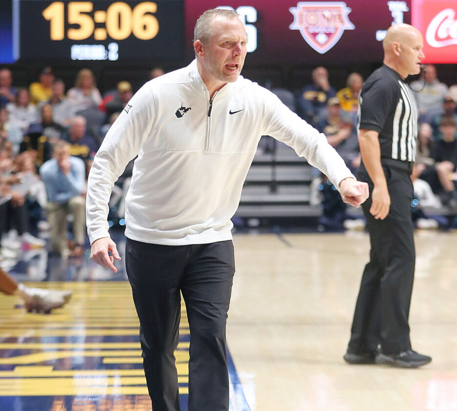 Photo courtesy of BlueGoldNews.com Darian DeVries was officially introduced as the WVU men’s basketball coach on March 24 of this year.