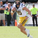 Photo courtesy of BlueGoldNews.com West Virginia quarterback Scotty Fox (15) tries to evade the UCF pass rush on Saturday afternoon.