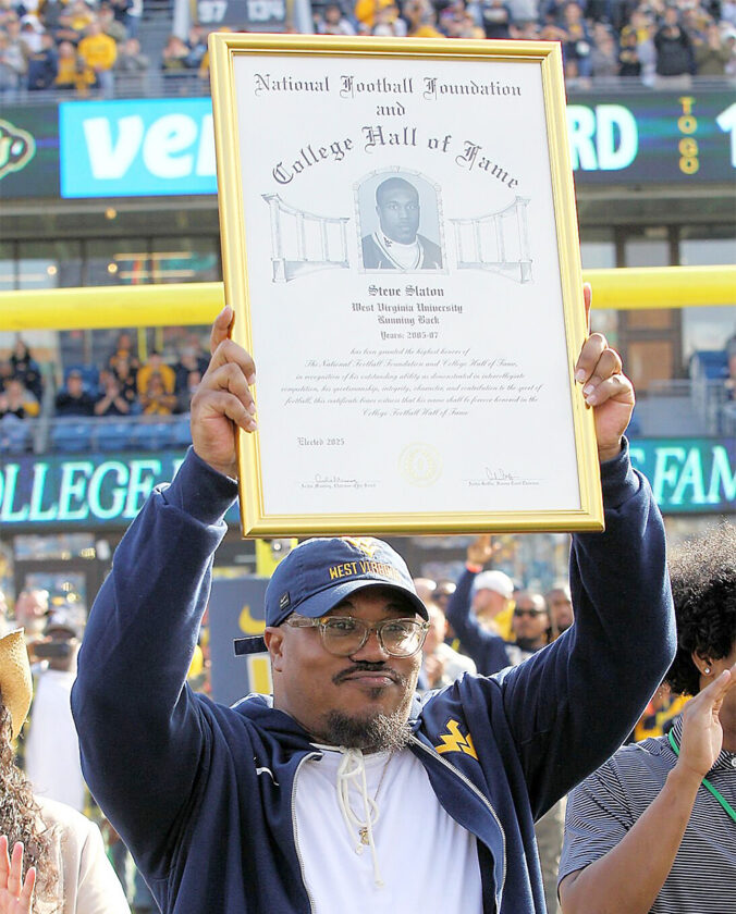 Photo courtesy of BlueGoldNews.com Running back Steve Slaton became the seventh Mountaineer player to be inducted the College Football Hall of Fame.