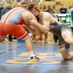 - The Tigers’ Logan Stewart, shown battling Lewis County’s Will Hovis, turned in a third-place effort in the Big 10 tourney.