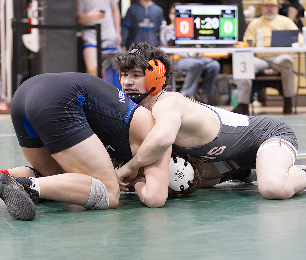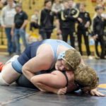 - The Inter-Mountain photo by Steve Chamberlain Elkins High’s Chiron Wing, right, locks up with Bridgeport’s Sullivan Gummer in a 190-pound weight class match during the Big 10 Conference Championships held this past Saturday at Richard P. Simmons Memorial Gymnasium. Wing won the bout by pin fall en route to placing third in his weight class.