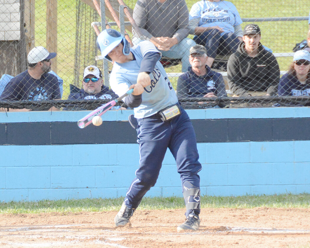 - Philip Barbour’s Landyn Carpenter makes contact during Wednesday’s contest against Tucker County in Philippi. Carpenter had two hits and two RBIs in the Colts’ 16-1 victory.